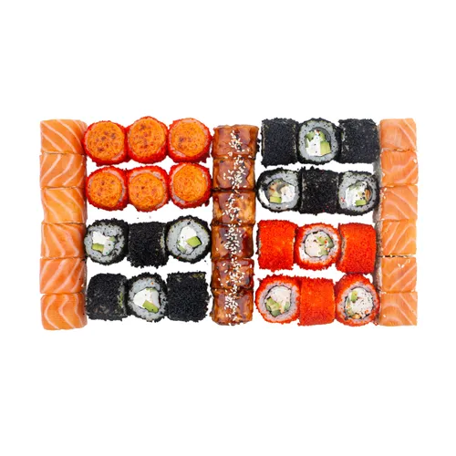 УГОРЬ, БУРИ ТЕРИЯКИ, ТОМАГО, КИВИ, СЛИВОЧНЫЙ СЫР, ИКРА МАСАГО, КУНЖУТ ЧЕРНЫЙ (6 шт.)