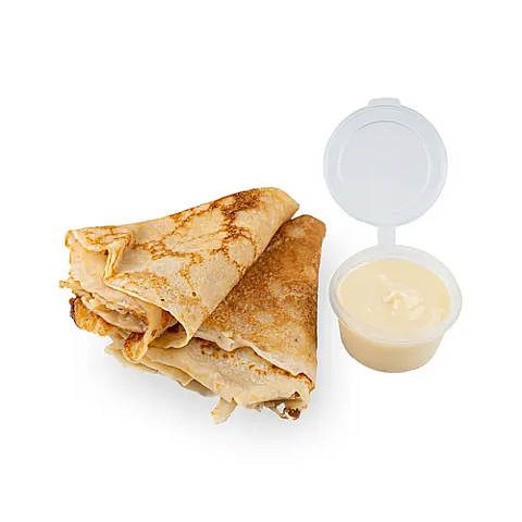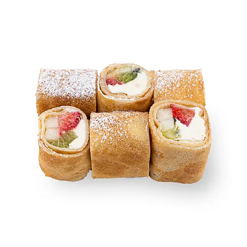 Сладкий блинчик в сочетании яблока, клубники и киви с крем-чиз