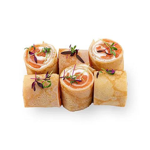 Воздушный блинчик с нежнейшим лососем, сливочным сыром и микрозеленью