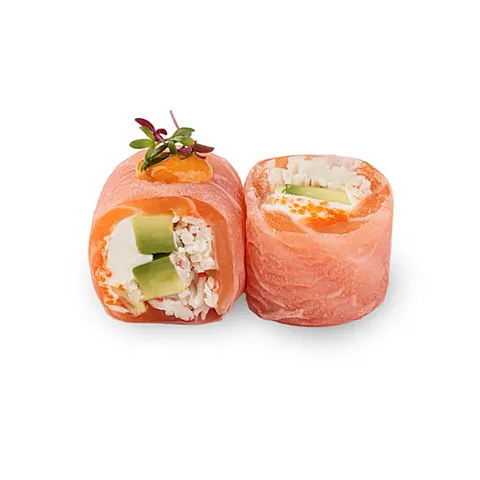 ЛОСОСЬ, АВОКАДО, СНЕЖНЫЙ КРАБ, СЛИВОЧНЫЙ СЫР, СОУС ТОМ ЯМ, ИКРА МАСАГО, ЛУК ЗЕЛЁНЫЙ, МАМЕ НОРИ, АМАРАНТ, КРЕСС-САЛАТ (8 Шт.)