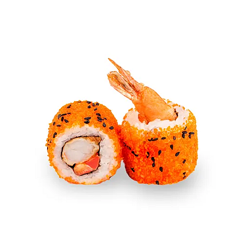 КРЕВЕТКА ТЕМПУРА, БОЛГАРСКИЙ ПЕРЕЦ, СОУС СПАЙСИ, ИКРА МАСАГО, КУНЖУТ (6 шт.)