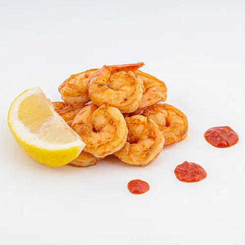 ЖГУЧИЕ ОБЖАРЕННЫЕ КРЕВЕТКИ С ОСТРЫМ ТОМАТНЫМ СОУСОМ ИЗ ЧЕСНОКА, УКРОПА И СПЕЦИЙ ШИЧИМИ ПОДАЕТСЯ С СОУСОМ РАНЧЕРО И ДОЛЬКОЙ ЛИМОНА