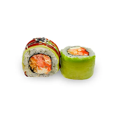 КРАБОВОЕ МЯСО, СНЕЖНЫЙ КРАБ, ОГУРЕЦ, ИКРА МАСАГО, АВОКАДО, МАЙОНЕЗ КЮПИ (6 шт.)